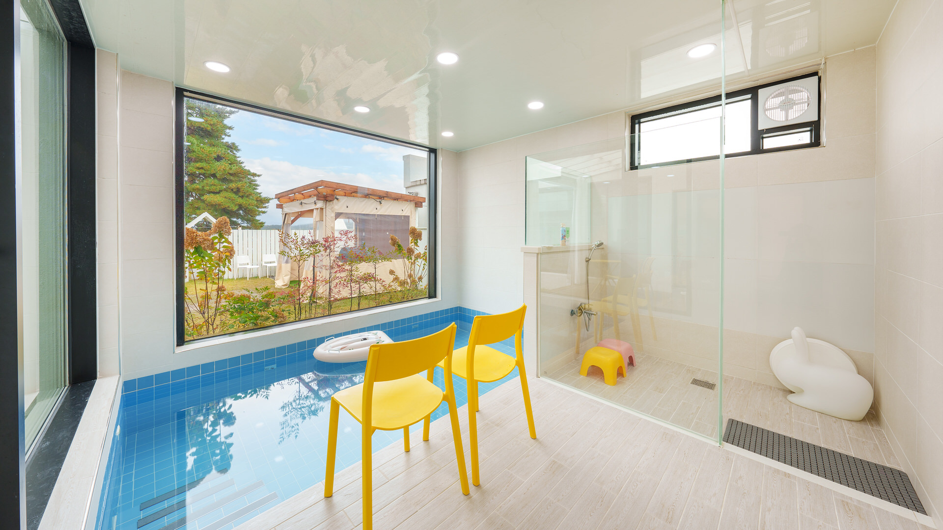 사계절 이용 가능한 개별 수영장이 준비되어 있습니다. 날씨 상관없이 물놀이를 신나게 즐겨보세요. ※ 자세한 사항은 예약안내 참고 부탁드립니다.